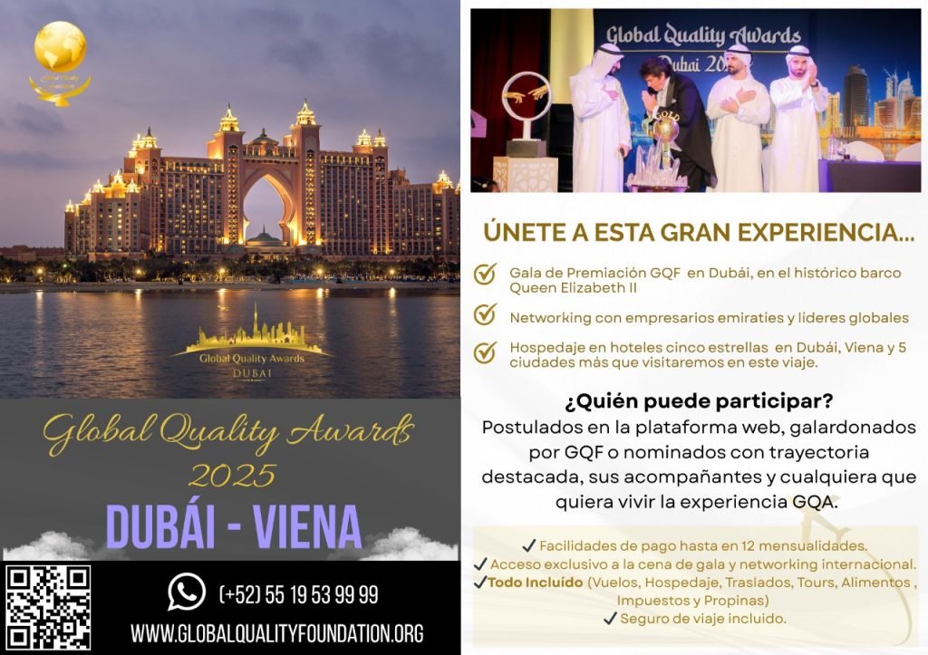 Puedes realizar tu reservación para asistir a los próximos Global Quality Awards realizando tu pago con el concepto: RESERVA GQA y enviando tu comprobante al correo: logistica@gqf.org.mx o al teléfono (+52) 56 13 13 14 04 adjuntando foto de tu PASAPORTE (o pasaportes en caso de acudir con más invitados) y NÚMERO DE CONTACTO directo.